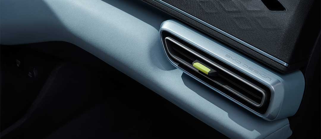 Ventilasi AC BYD Atto 1 dirancang dengan estetika “cyberpunk” yang mencolok, memadukan garis-garis tegas dan aksen warna kontras untuk menciptakan kesan visual yang futuristik dan penuh karakter.